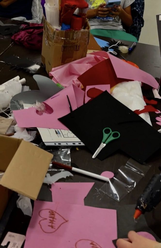 Kedden a ház dekorálása mellett mindenkinek lehetősége volt jelmezt készíteni a közelgő Halloween-bulira: A Zsibongóban a Csereberéről maradt ruhákat a gyerekekkel közösen átalakítottuk, varrtuk, festettük. A ruhák mellé maszkokat is készítettünk, így születtett a sok-sok denevér, boszorkány, szuperhős és vámpír-jelmez.