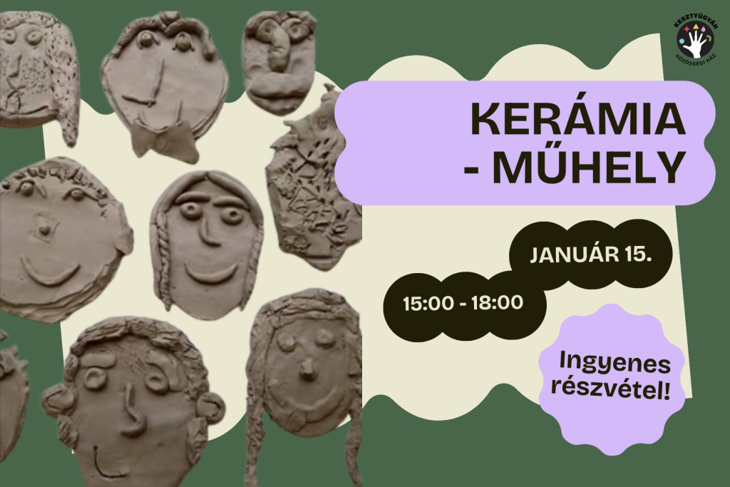Indítsuk közös agyagozással az új évet! Gyertek január 15-én, csütörtök délután 15:00 és 19:00 között az Oszlopos-termünkbe, ahol kipróbálhatjátok az agyagozás és kerámia-festés technikáját. A foglalkozáson való részvétel ingyenes!