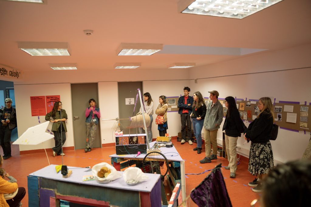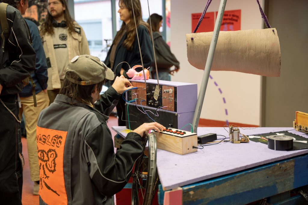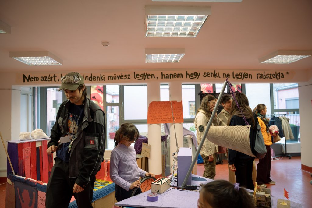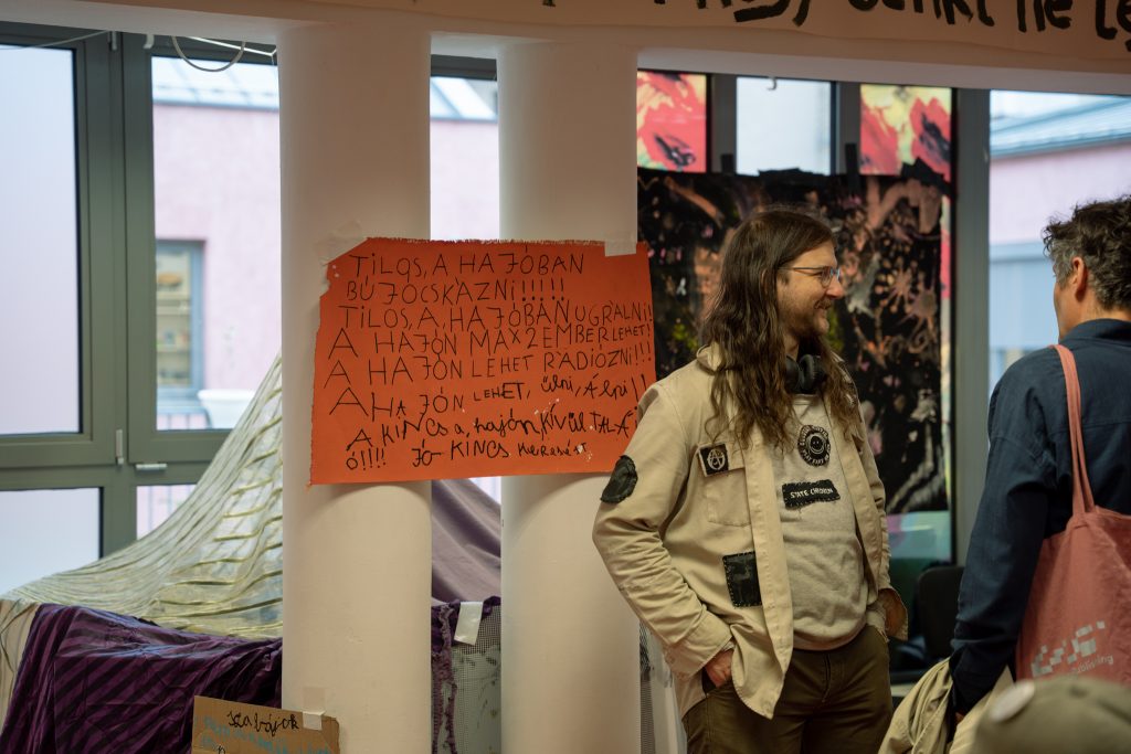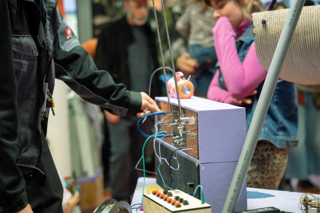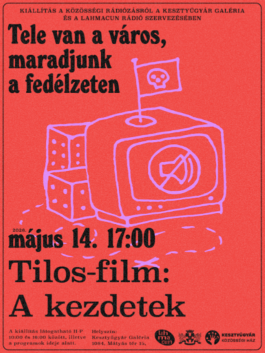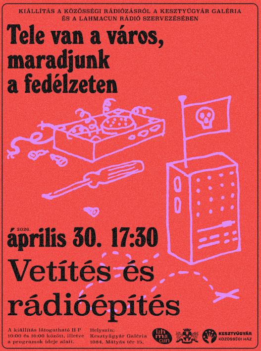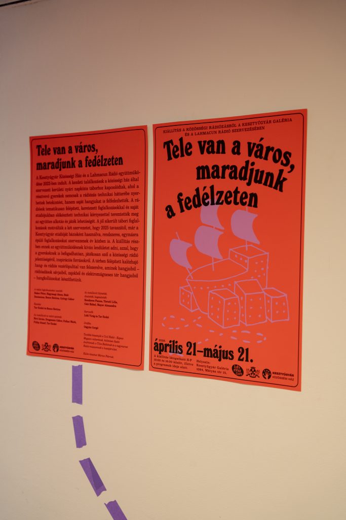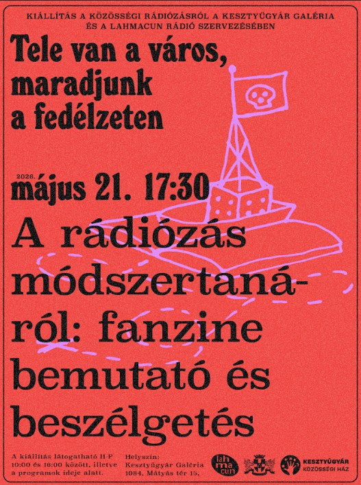 A Kesztyűgyár Közösségi Ház és a Lahmacun Rádió együttműködése 2022-ben indult. A kezdeti találkozások a közösségi ház által szervezett kerületi nyári napközis táborhoz kapcsolódtak, ahol a résztvevő gyerekek nemcsak a rádiózás technikai hátterébe nyerhettek betekintést, hanem saját hangjukat is felfedezhették. A rádiósok tematikusan felépített, keretezett foglalkozásokkal és saját stúdiójukban előkészített technikai környezettel teremtették meg az együttes alkotás és játék lehetőségét. A jól sikerült tábori foglalkozások motiválták a két szervezetet, hogy 2025 tavaszától, már a Kesztyűgyár stúdióját bázisként használva, rendszeres, egymásra épülő foglalkozásokat szervezzenek év közben is. A kiállítás részben ennek az együttműködésnek kíván lendületet adni, azzal, hogy a gyerekeknek is befogadhatóan, játékosan szól a közösségi rádió jelentőségéről, inspirációs forrásokról. A kiállításon egy hang- és rádiós vezérlőpulttal rendelkező kalózhajó is helyet kap, aminek hangjaiból – rádióadások sávjaiból, zajokból és elektromágneses tér hangjaiból – hangkollázsokat készíthetünk. A megnyitón a kazettára írás jogát fenntartjuk!
